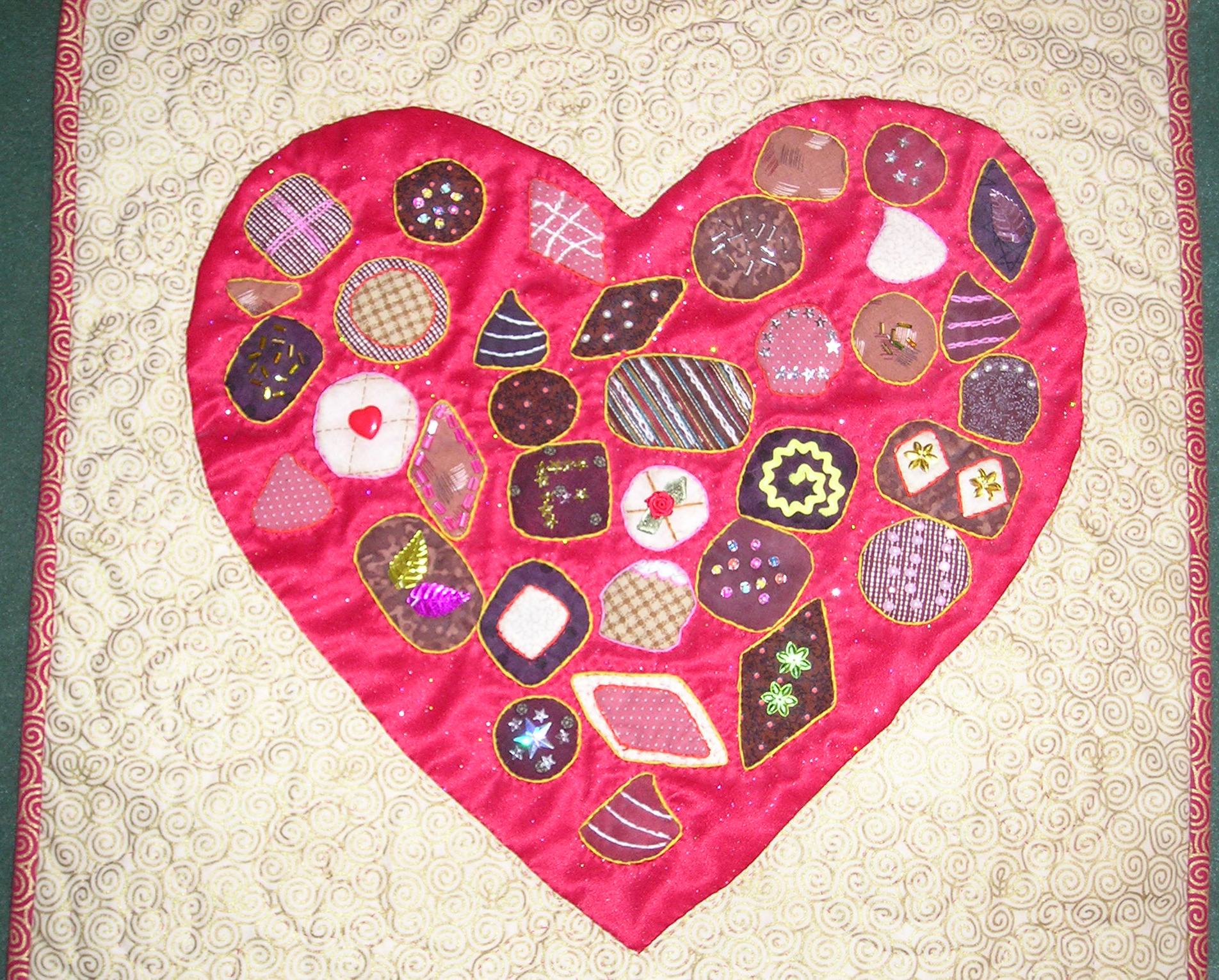 (And how gorgeous is this quilt, a gift from my talented friend Leland Burnham? Very! It is named “Temptation,” and looks good enought to eat!)