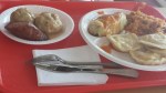 Then, more recently, my food writing colleague, Pat Tanner, discovered Kusina Pilipina up Route 27 in Franklin Park. She let me tag along when she visited, her post about that is here. There are just a few grocery items here (I especially noticed the breads), so the focus is on freshly prepared home style Filipino food, mostly to go, although there are a couple of stools which let us enjoy our lunches on the spot and visit with the personable owner, Mae Morales. She does a good business in catering trays for family events, but if you show up hungry with a curious mind, and ask about the hot foods of the day, they are totally accommodating to helping you put together a combo plate so you can try a number of things. We ate everything in front of us, plus took more home to sample later! Like Pat, I thought maybe I didn’t care for Filipino food based on what I’d tried in the past, which I found heavy, salty, etc. But Ms. Morales has lightened up the cuisine for today’s more health-conscious diners, and cut back on salt, too, so anyone can enjoy it.