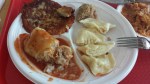 We each had a short piece of kielbasa (smoked in house by husband Zbigniew Herdzik), and some delicious sauerkraut stew too. The former was salty and fatty, but that’s to be expected with kielbasa of course, and the sauerkraut stew was tender and briny, with flecks of ham and shredded carrot in it. That actually went especially well with the mild, plain, perogies, and I believe it is called bigos, after researching it on Wikipedia, where it says it’s often served with mashed potatoes or rye bread. Combination plates are $7.99, and Ms. Herdzik’s very obliging son behind the counter let us trade off some duplicate items between the #1 and #2 combos so we could try as many dishes as possible. Next time I’ll try the chicken or pork cutlets, and maybe a goulash. There’s lots more to explore here, just in hot foods alone.