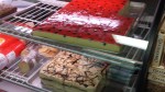 I also bought a piece of outrageous-looking triple-layer walnut-mocha cake that I couldn’t resist for dessert at home that evening – almost a challenge, as it really looked like the over-the-top too sweet desserts one sees in diners everywhere. But this was amazingly good – the layers were light sponge, two of mild chocolate and one of walnuts in the middle. (Back in Poland, Ms. Herdzik was a trained chef and baker.) In between layers and on top of the cake was pure whipped cream, barely (if at all) sweetened. Eating this cake was like eating air, so I let myself feel somewhat virtuous about it. In the photo below of the dessert case, that cake is on the bottom; on the top shelf, glazed to resemble watermelon, was a soft cheesecake, one of a couple varieties of “sernik” on offer, the other was a dryer cheesecake with a cake layer on the bottom.