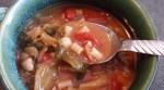 Almost anything goes well with such hefty, hearty greenery — my most memorable experiment was slicing previously sauteed ever so slightly, then chilled) farmstand (Dey Road) tiny bright purple eggplant chunks into a potpourri of tomatoes.