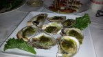 The fish was followed by another pungent dish, preserved fish roe on celery. That was like Italian bottarga, strong and salty. Then came briefly broiled oysters on the half shell with pesto. Just like the fish, they were pristinely fresh, as Mr. Lin goes to the Fulton Fish Market himself for seafood, at the crack of dawn. (He was also pouring good Cabernet through this meal, but I abstained, I just can’t drink at lunch and stay alert.)