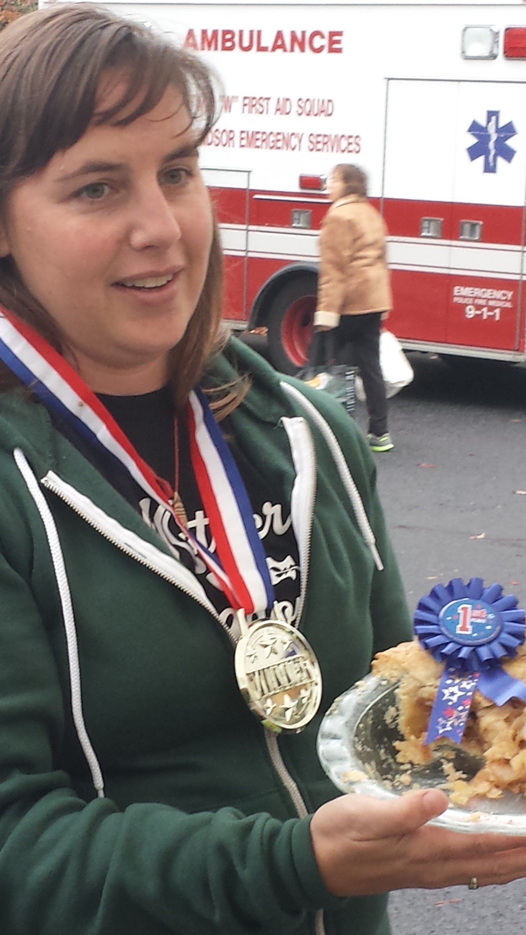 Congratulations to Megan Hodges who was the winner of yesterday’s apple pie contest at the West Windsor Community Farmers Market. The second place winner, Liz Scafa presented a pie with a really good crumb crust, and third place went to Pammie Wagner, who made a pretty lattice crust for her entry.