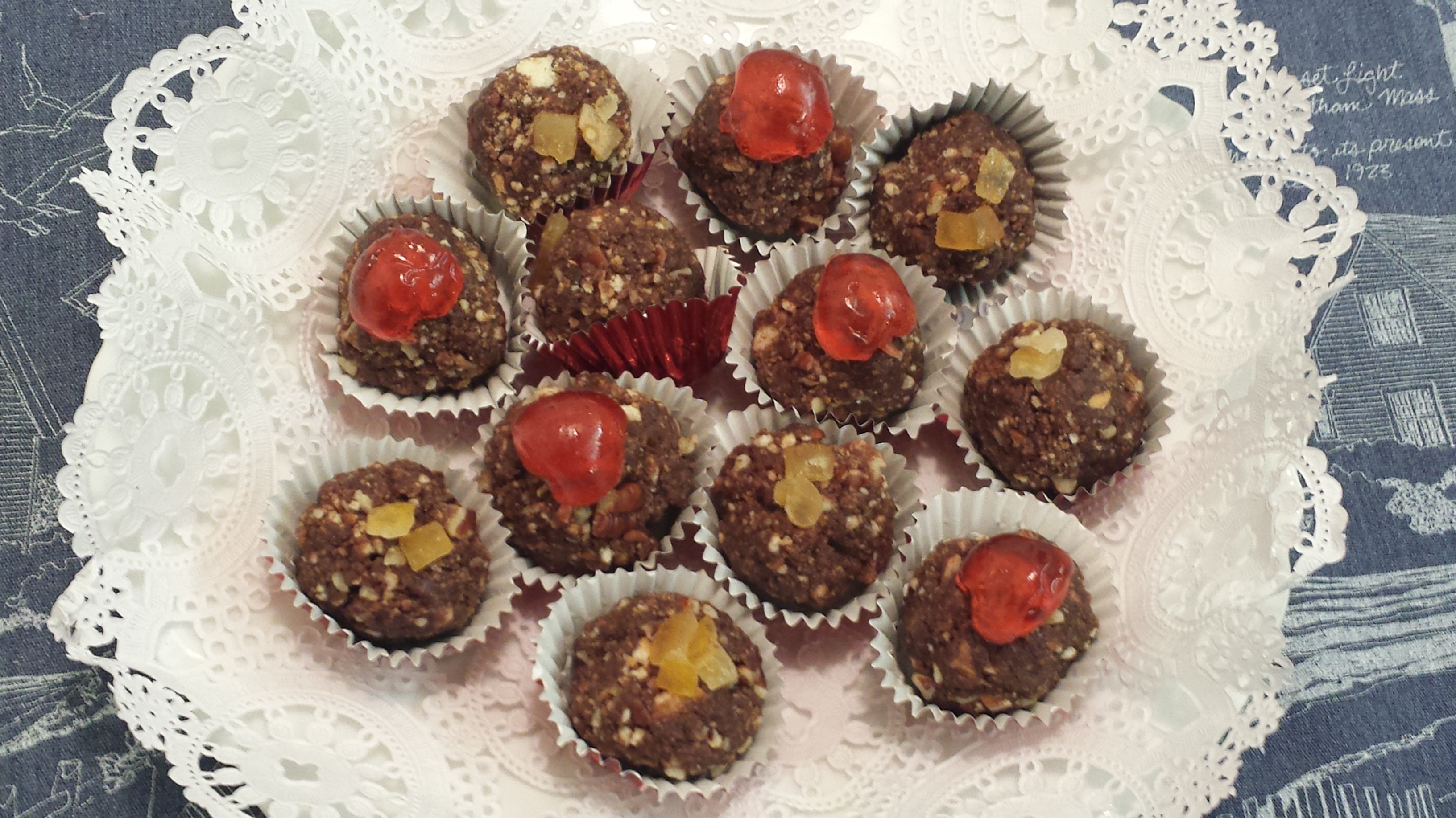 At bottom, check out the gorgeous lobster tails and stuffed potatoes my brother Mark and his wife Elaine served – wowsa! We had string beans with sweet red pepper, too. I also brought along the last of the Cognac chocolate sugar plums I’d made this season, originally for my Good Taste column in the December Packet Magazine. I took some along on Christmas Day too where I saw my niece and nephew’s family. The ones pictured here are from my friend’s choucroute dinner I was lucky to attend in mid December.