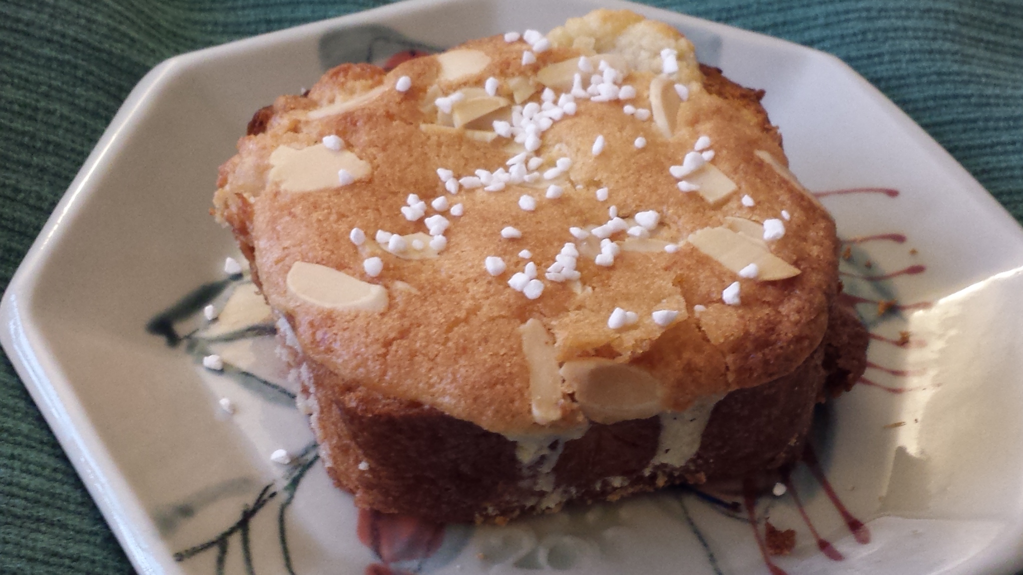Another way to vary this dish is by spreading a thin layer of jam (bitter marmalade, blackberry, maybe ginger preserves?) after brushing on the syrup but before spreading the almond cream.