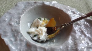 Chateau D’Arlay, “Corail”, Cotes du Jura, 2009. The six year old rosé blend of Pinot Noir, Trosseau, Poulsard, Savignin and Chardonnay. (This was very unusual, unlike any rosé I’ve had before.)