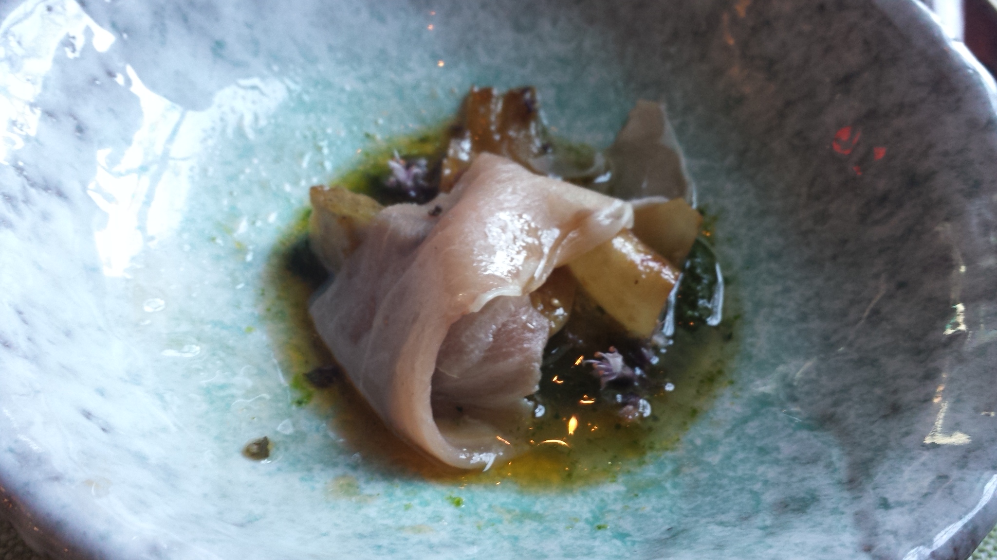 20150807_190137 Published at 2048 × 1152 in Dinner at elements: 13 courses, 9 wines, one memorable evening « Previous Next » Fennel, cured pork, kale pistou, onion