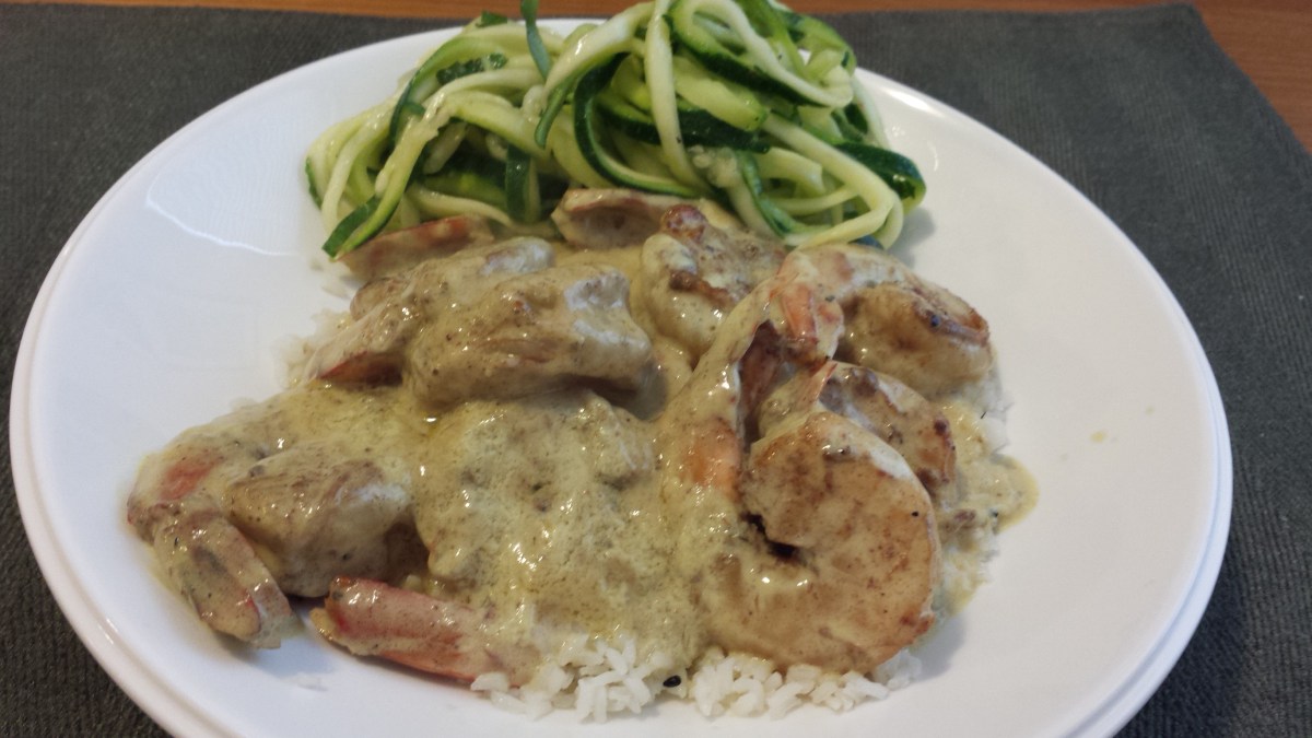 20150830_185058 Published at 3264 × 1836 in August Best Bites « Previous Next » Coconut shrimp on basmati w/zucchini salad