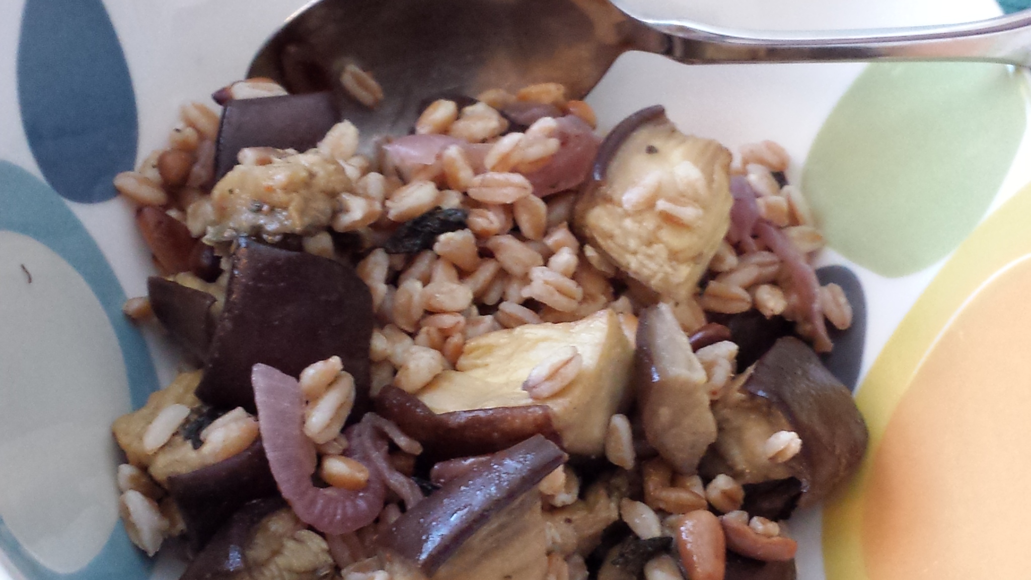 September Recipe of the Month – Farro Salad with Roasted Eggplant, Caramelized Onion, and Pine Nuts
