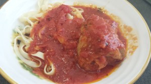 Also note the pork braciole – I am lazy, I buy that at ShopRite (yes, in spite of “no-name” meat), and it’s surprisingly good. They have beef too, but I far prefer the pork; I just brown it then pour over some very simple tomato sauce (in this case Monte Bene from Whole Foods), and simmer until the pork is tender. Put some pasta on the side and I’m good to go. I just can’t make everything from scratch, although I did for many, many years. Now I get a free pass on some scratch cooking.