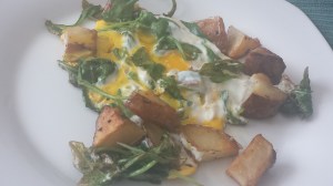 Note there are two egg dishes in the slideshow below, based on leftovers, one with chopped tomato and rice and the other with roasted potatoes and arugula. This is my new way of throwing together odds and ends to make a quick breakfast/lunch when I’m staying in for the day. Love it!