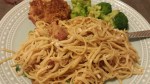 As you’ll see below, my love affair with grilled cheese and Lucy’s chicken pot pie and clam sauce continues. But I also roasted some spareribs, made braised beans with escarole, discovered TJ’s pumpkin cream cheese (the only pumpkin anything I’ve indulged in so far), and tried the very good Café Spice Indian entrées at McCaffrey’s. The chicken tikka masala was properly spicy and the rice even had whole green cardamom in it, my current favorite spice. Ingredients that don’t make you wince, too! They are also sold at Whole Foods, their PR person told me. She’d emailed me about them, and offered to send me a coupon; it never arrived, but I’d been meaning to try them anyway and am glad I did. I just bought the chicken Vindaloo (tempting the hot ‘n’ spicy fates I know), but haven’t tried it yet. And of course there are vegetarian options available.