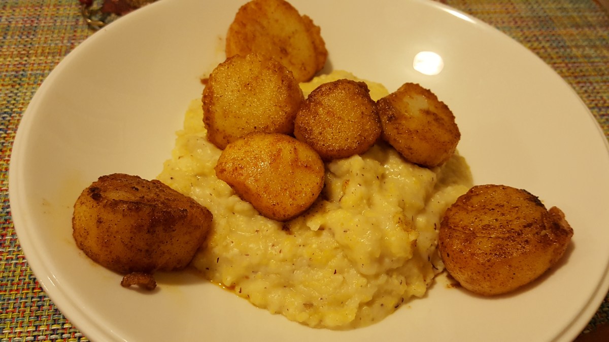 20170105_182438 Published at 3264 × 1836 in January Best Bites « Previous Next » Scallops on polenta taragna (w/buckwheat)