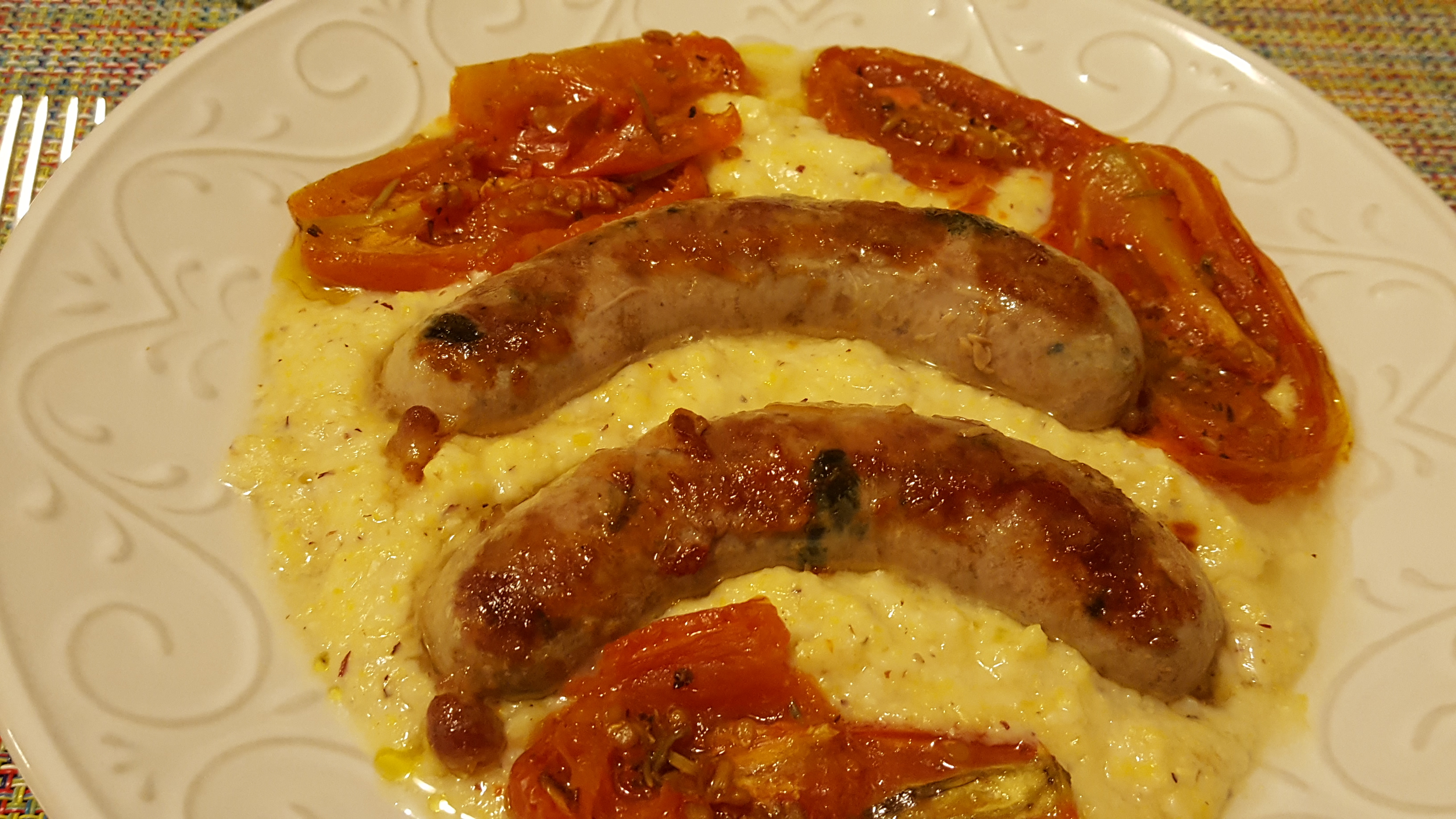 20170108_190542 Published at 3264 × 1836 in January Best Bites « Previous Next » Sausage on polenta with oven-roasted tomatoes